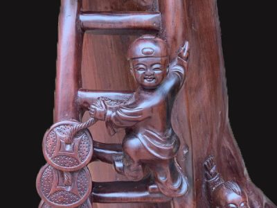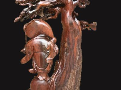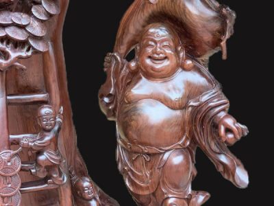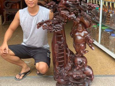 Di Lặc Ngũ Phúc Đứng Gốc Tùng Gỗ Trắc 108x62x32 cm