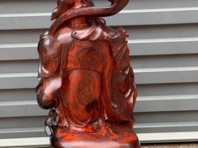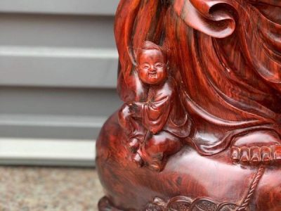 Di Lặc Tam Phúc Gỗ Trắc Hộp Siêu Vân 57x26x23 cm