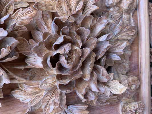 Tranh PHÙ DUNG SƯA – Tuyệt phẩm bậc nhất của các loại gỗ với màu sắc hoa lệ, đục gọt vô cùng sắc nét , những cánh hoa mỏng như thật , mùi hương vĩnh hằng, bách độc bất xâm, có tác dụng tránh tà ma và bệnh tật.