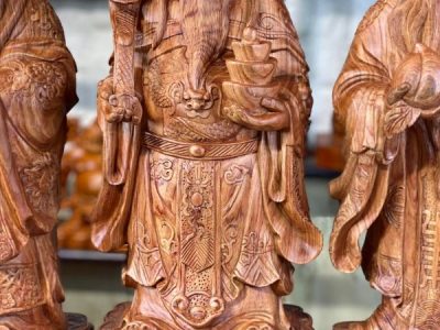 Ngoài ra ĐỒ GỖ VINH ĐÍNH còn cung cấp các mẫu tượng Tam Đa đẹp bằng gỗ Tử Đàn đỏ tím được điêu khắc tinh xảo, sắc nét và có hồn.